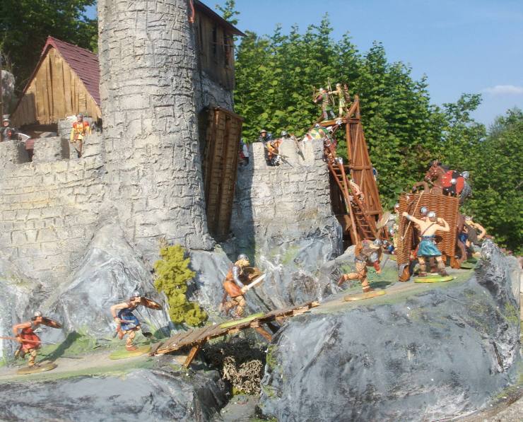 ElsaburgDonjon & KampfwagenCAMERAPont LevisBasse CourKampfwagenVikingsVikings & NormandsTour d’assautPont levis haute-courBasse courSortie des assiégésVaillant & GawainDonjonPont levis secondaireL’assautElsaburgVikings & NormandsCatapulteContre attaqueVikings casque à lunettesElastolin modifiéConte modifié